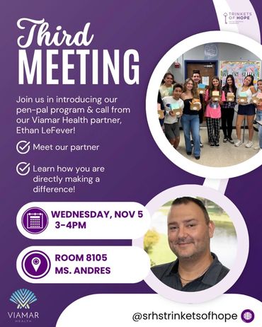 SPANISH RIVER HIGH SCHOOL (CONCLUDED) - Wednesday, October 8th from 3-4pm in room 8-105. We are going to be making self-care baskets containing items such as face masks, cards, fidget toys, notebooks, etc, which will be the start of our pen-pal box delivery program.